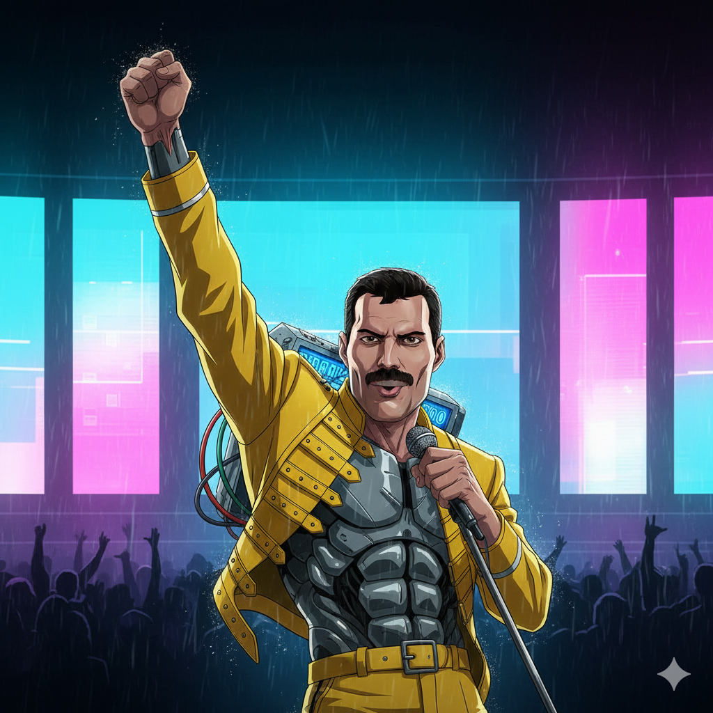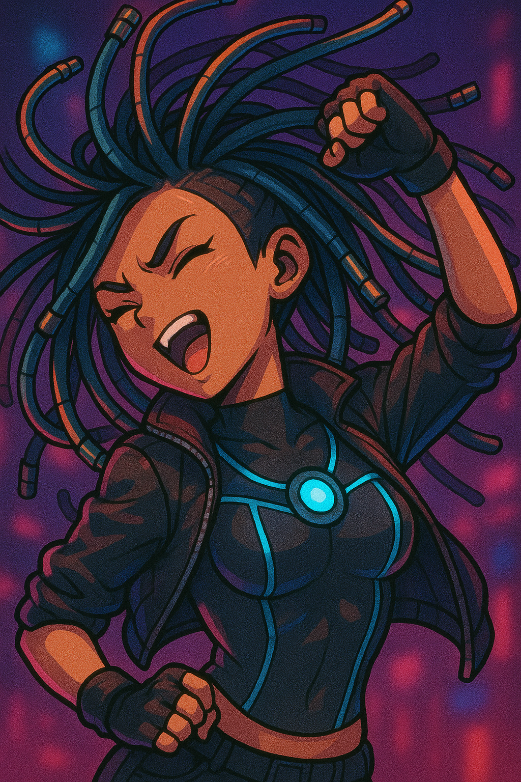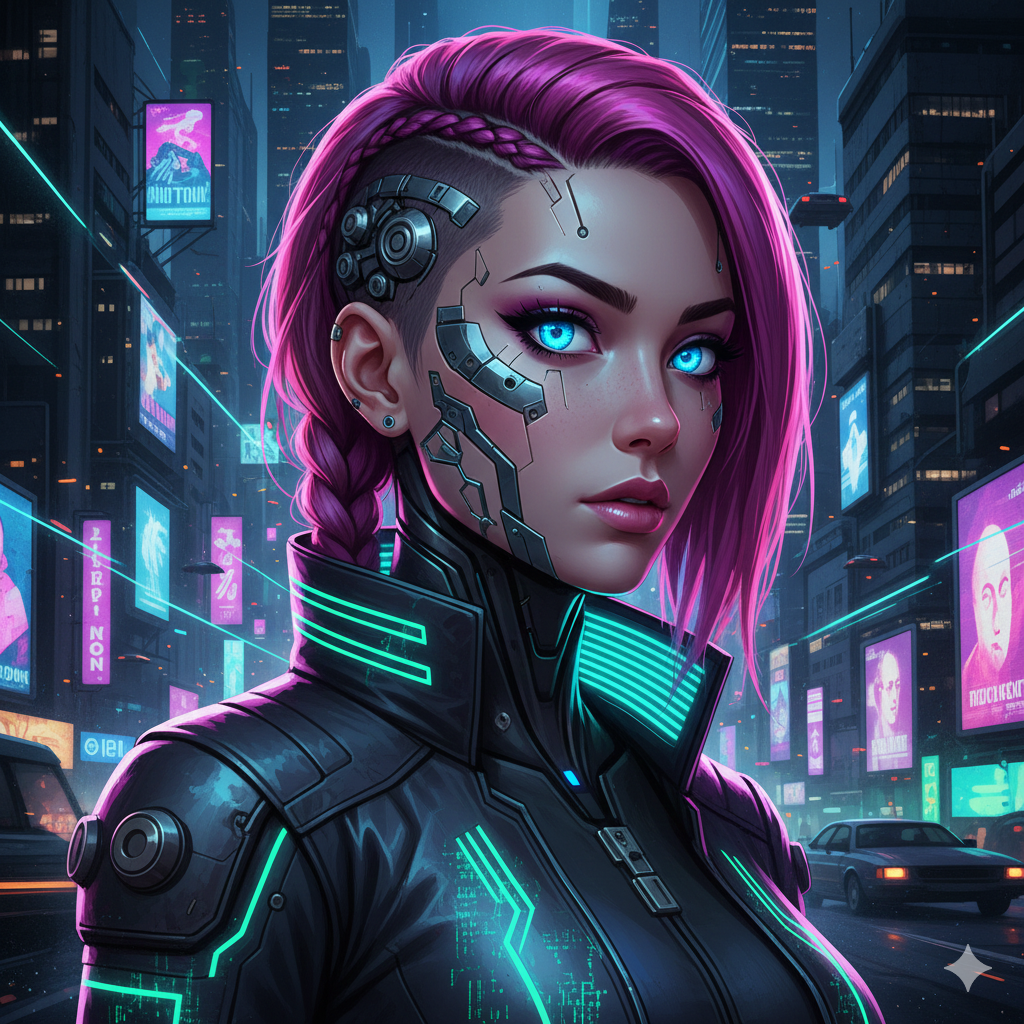 Cidades neon, humanos híbridos, caos e tecnologia.